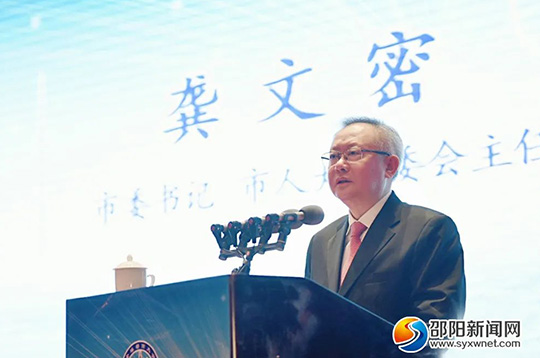 龔文密代表市委、市政府和全市人民向各位邵商和來賓表示熱烈歡迎,向長期關心支持幫助邵陽發(fā)展的各界朋友表示衷心感謝。他說,新中國成立以來特別是改革開放以來,新一代邵商敢為天下先、勇當弄潮兒,書寫了創(chuàng)新創(chuàng)業(yè)的傳奇,承載了邵陽發(fā)展的榮光,成為當今中國最活躍的商人群體之一。自2012年首屆邵商大會以來,邵商累計回鄉(xiāng)投資超過3000億元,占全市招商引資總額的近八成,百萬邵商已成為支撐邵陽經(jīng)濟社會發(fā)展的重要力量。